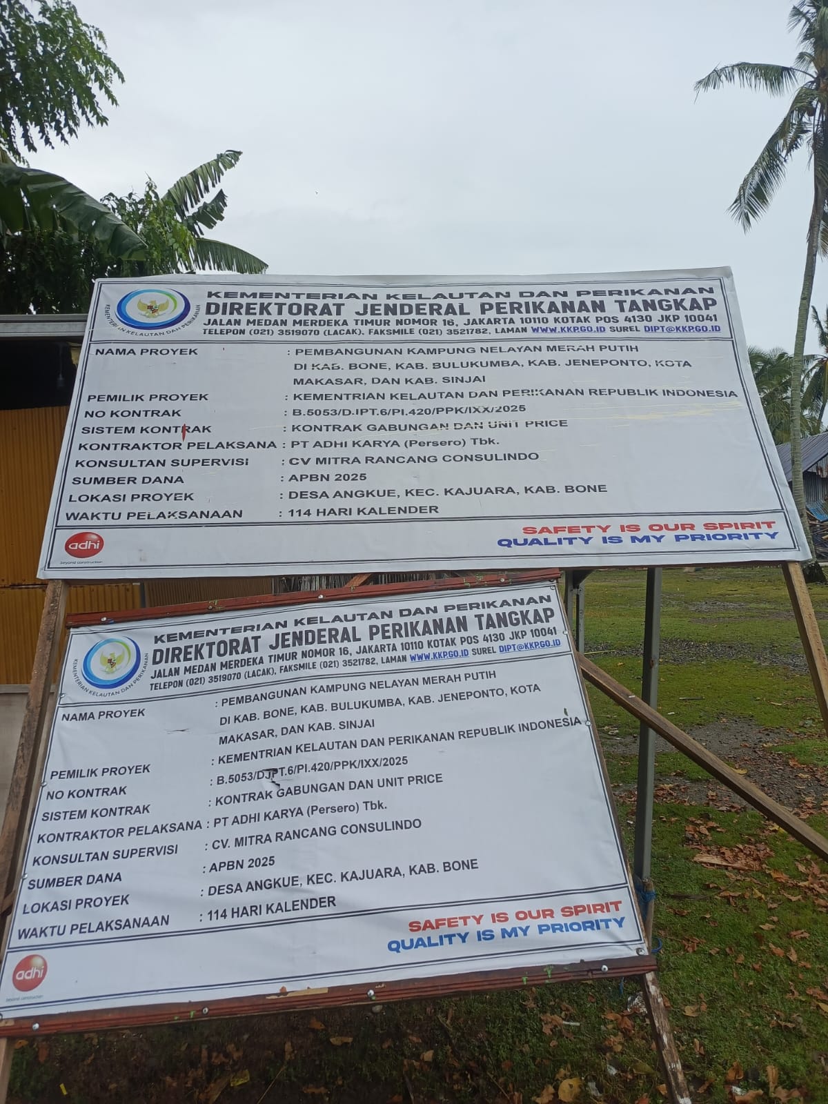Berdasarkan informasi yang diperoleh di lapangan, proyek tersebut berada di bawah kontrak PT Adhi Karya (Persero) Tbk sebagai kontraktor utama. Dalam pelaksanaannya, sebagian pekerjaan disebut disubkontrakkan kepada PT Adelia Sejahterah Permai yang beralamat di Makassar.