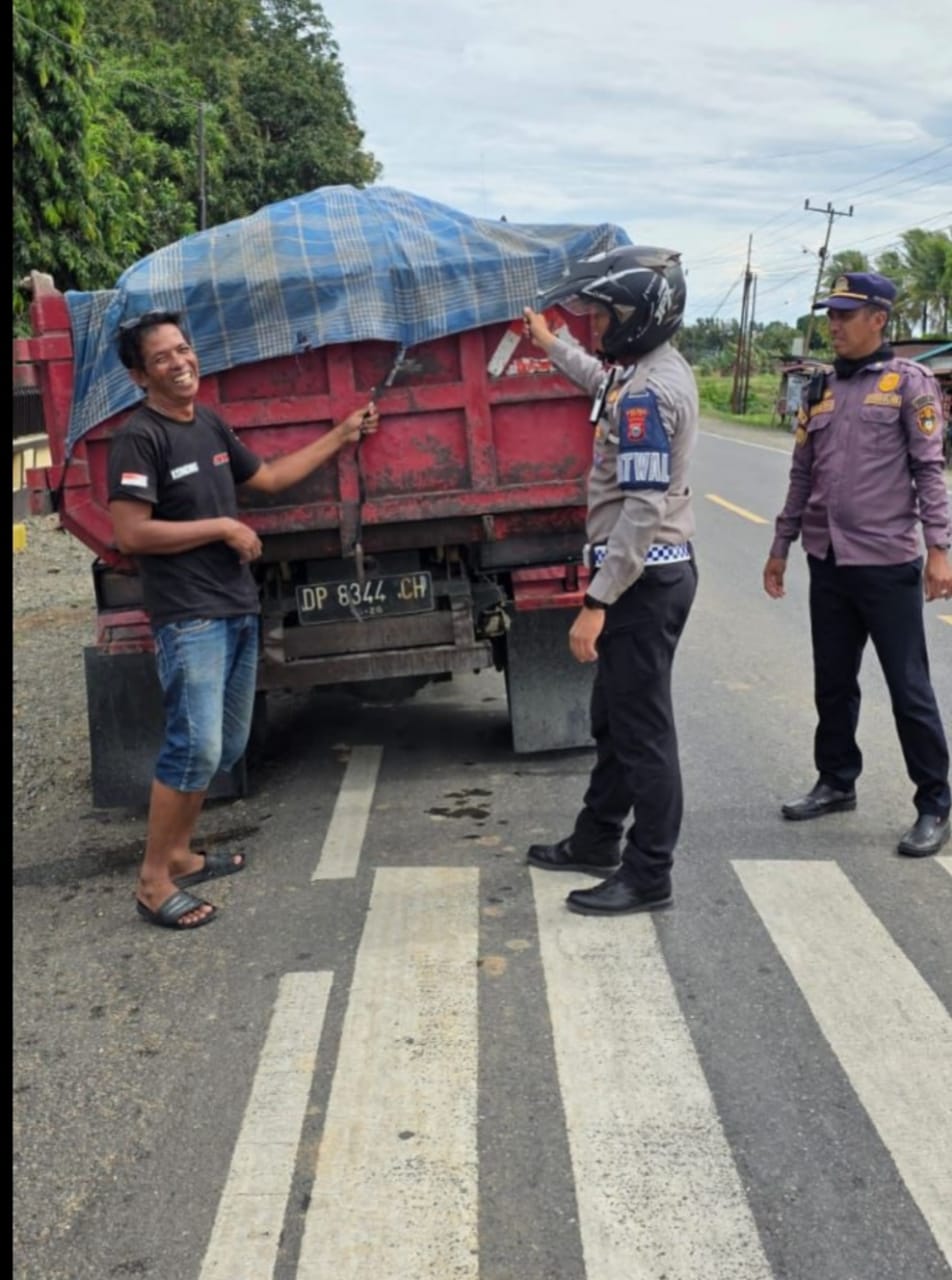 Dipimpin langsung oleh Kanit Turjawali Sat Lantas Polres Wajo, Ipda Fajri, S.Kom. M.A.P., bersama dengan Kanit Kamsel Ipda H. Baharuddin, S.Sos., petugas menyampaikan pentingnya bagi para pengemudi untuk memasang penutup bak truk (terpal) saat mengangkut material. Himbauan ini bertujuan untuk menjaga keselamatan pengendara lain, mencegah terjadinya kecelakaan, serta menjaga kebersihan lingkungan di sepanjang jalur yang dilalui oleh truk.